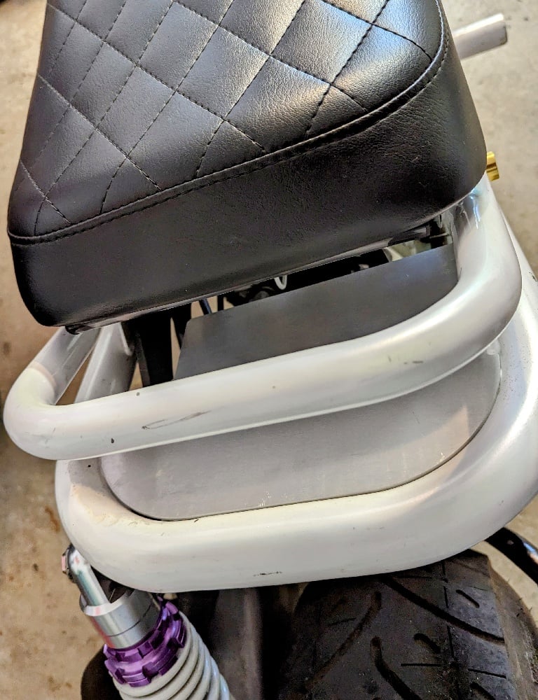 Looking to add some more polished items or aluminum parts to your scoot. This is designed to work with all stretch kits and engine mounts. It recesses into the frame using the stock mounting points. This frame cover protects your seat and aftermarket taillight from road debris. Made of thick Aluminum or Acrylic. Get Reckless.